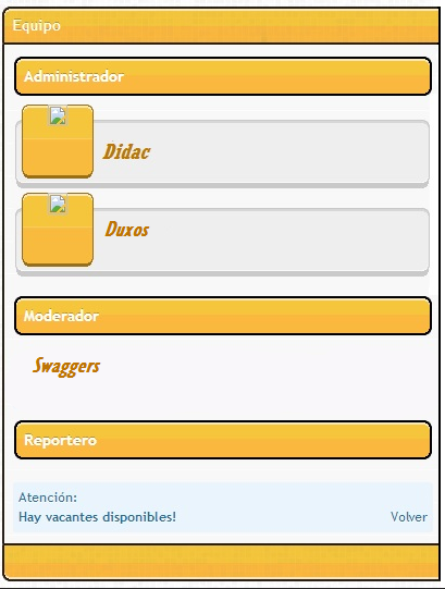 Son los que están detrás de Mabbos, todos aquellos que pasan el día estrujandose la mente en busca de nuevas ideas y sacar adelante todas esas locuras. Siempre atentos de que todo funcione sin problemas y, por encima de todo, que Mabbos sea el lugar seguro del que sentirse orgullosos. Criticados, admirados,….. siempre tratan de hacerlo lo mejor posible.